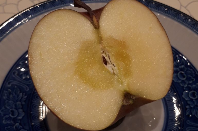 秋田県産のリンゴを使用しました。リンゴを割ると、密がギッシリでした!!